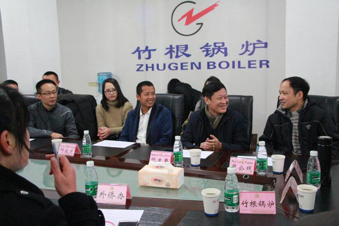 Vietnamese and Cambodian Customers Visited Our CompanyTime:2018-12-26 On Dec. 21, 2018, Mr. Sao Pana, Vice Minister of the Interior of Cambodia, Mr. Bai Naxi, Vice Governor of Bodi Minzhi Province, Mr. Ruan Desheng, Member of the Law Enforcement Bureau of the Ministry of Agricultural and Rural Development of Vietnam, Mr. Ruan Youquan, Deputy General Manager of the First Electric Power Design Institute of Vietnam, Mr. Deng Chenglong, Director of International Cooperation Dept., Mr. Pei Gongdao, Deputy General Manager of the Electric Business Dept., Mr. Xiong Taiyan, Chief Expert of the Business Cooperation Alliance, Mr. Shuxing, Agricultural Technology Co., Ltd., Mr. Luo Yunfei, Chairman of Vietnam Ocean Investment and Trade Co., Ltd., and Mr. Xiong Fan, General Manager of Vietnam China-based Import and Export Alliance Co., Ltd. were accompanied by the leaders of Leshan government to visit Sichuan Zhugen Boiler Co., Ltd.. President Liu Yong briefed the company's 60-year-development, and expressed the willing to establish a cooperating relationship with ASEAN countries during the meeting. Customers have highly appraised and appreciated the company's products and quality, expressed their willing to cooperate with Zhugen Boiler. Taking a group photo